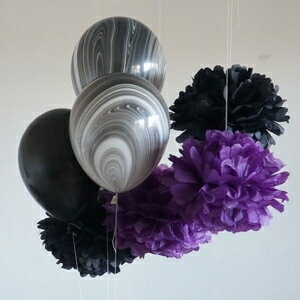 あす楽!メール便可!ブラック&ホワイト マーブル模様のゴム風船、ラバーバルーン 11インチ 3ピースセット