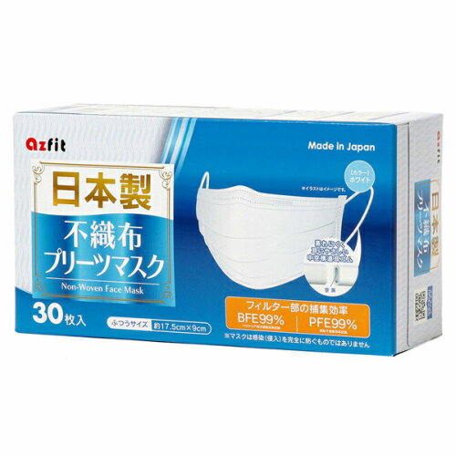 商品に関するお問合せアズフィット株式会社〒103-0023 東京都中央区日本橋本町4-9-2 本栄ビルTEL:0120‐210‐843広告文責東盛商事株式会社 EC事業部電話:048-959-9624区分日本製 / 衛生マスク【アズフィット】日本製不織布プリーツマスク ふつうサイズ(30枚入)【4971773771298】【使い捨てマスク】 高バリア三層構造不織布マスク / プリーツタイプ / 30枚入 / 日本製 ●BFE99%、PFE99%●高バリア三層構造で細菌や花粉をしっかりガードします。