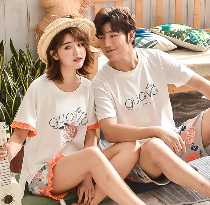 M/L/XL/XXL/XXXL/カップルパジャマ/2019新 中袖 夏 ルームウェア 韓国風 上下セット レディース ゆったり お揃い 寝巻き ルームウェア 可愛いパジャマ 春 夏 部屋着 おしゃれ 寝巻き 寝間着 パジャマ レース パンツ ボダン 短袖 M L XL XXXL メンズ 男女 棉