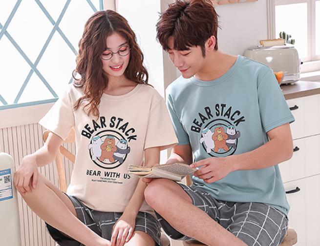 「FreelySoul」ペアお揃い前開きパジャマ 服 韓国 カップルルームウェア 半袖 ワンピース 綿100% ペアルック セクシー 部屋着 寝間着 寝巻き 大人可愛い ナイトウェア セットアップ レディース メンズ 上下セット 恋人 女の子 男の子 春 夏 YK-205