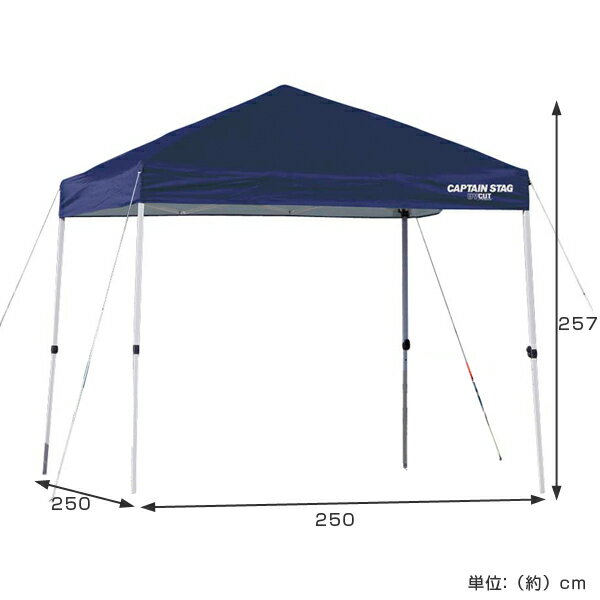 サイズ約 幅250×奥行250×高さ257・248・239(cm)収納サイズ:約 幅124×奥行21×高さ21(cm)重量:約16kg内容量1張り(付属品:ペグ8本、ガイドロープ4本、ペグ用収納袋1枚、キャスター付きバッグ1枚)材質【フライ】ポリエステル150D・シルバーコーティング(1000mm防水)、UV加工【フレーム】鉄(紛体塗装)生産国中国製備考※画像に使用しているテーブルや椅子などの小物は付属いたしません。